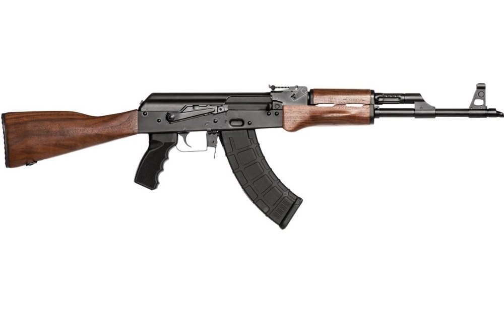 This version of the American-made classical AK-47 rifle (7.62x39mm) measures 35.25″ in overall length. It features a laminate wood buttstock,