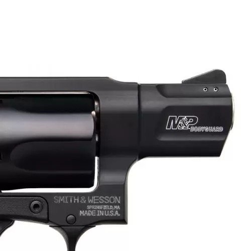 Chambered in .38 S&W Special +P, the M&P BODYGUARD BG38 continues Smith & Wesson’s broad line of reliable, small-frame self-defense revolvers. The M&P BODYGUARD BG38 delivers the optimal combination of accuracy and simplicity for personal protection needs. With its lightweight design, the M&P BODYGUARD BG38 allows for discreet carry and its hammerless design provides a snag-free presentation. The five-shot revolver features a short 1.875-inch barrel, which contributes to a compact overall length of 6.6 inches and an empty weight of 14.2 ounces. Lightweight and simple to use – nothing protects like a BODYGUARD.